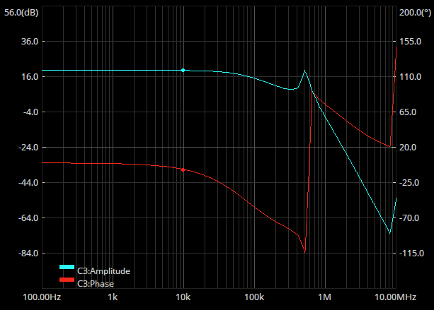 Adding in the differential amplifier here: Loop gain and the response looks like this: