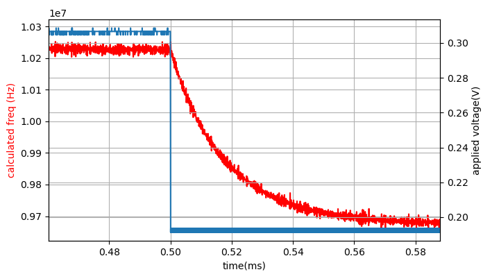 We can’t really do a frequency sweep of the VCO in quite the same way, but we can do a step response: