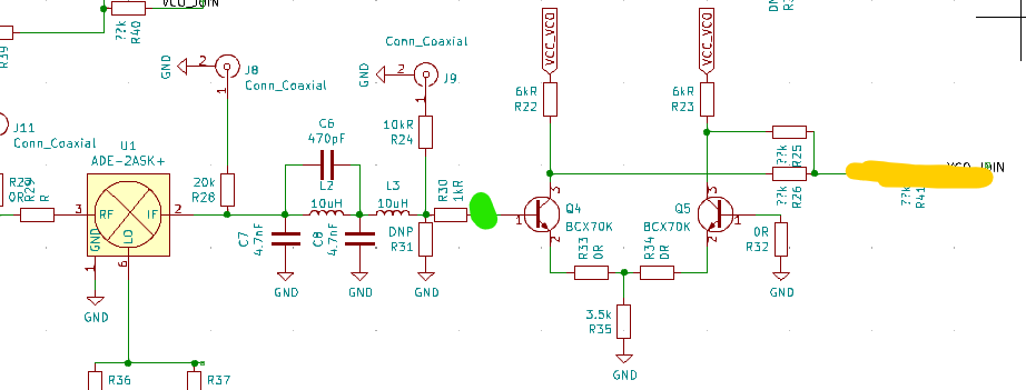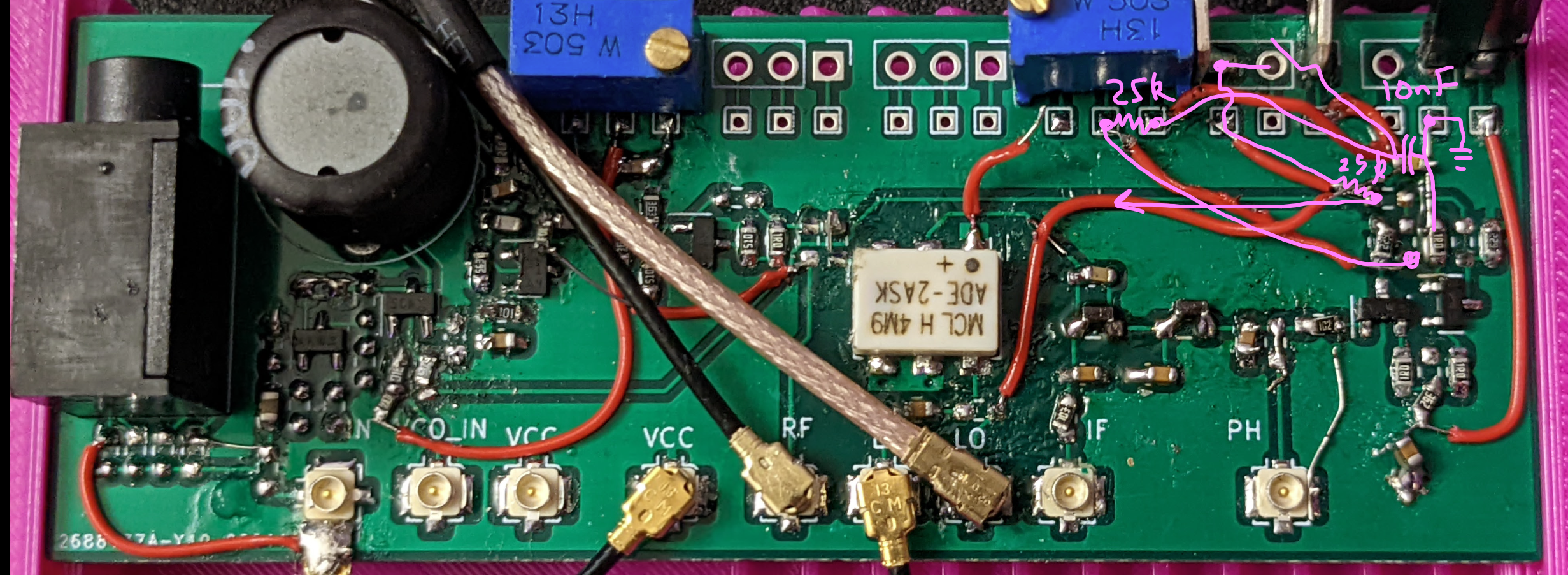 - Desoldering the resistor that attaches to the VCO has no effect, it can still lock. I now presume that the locking is occuring through the mixer somehow. It only happens over a tiny (10’s of mV MAX) voltage range as you would expect.