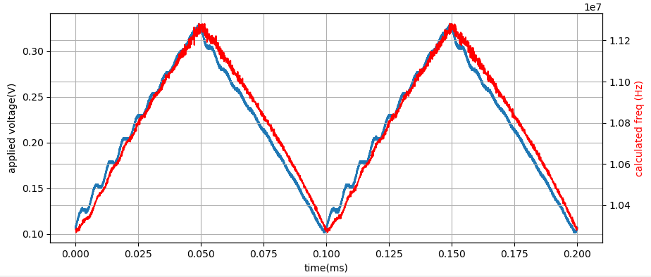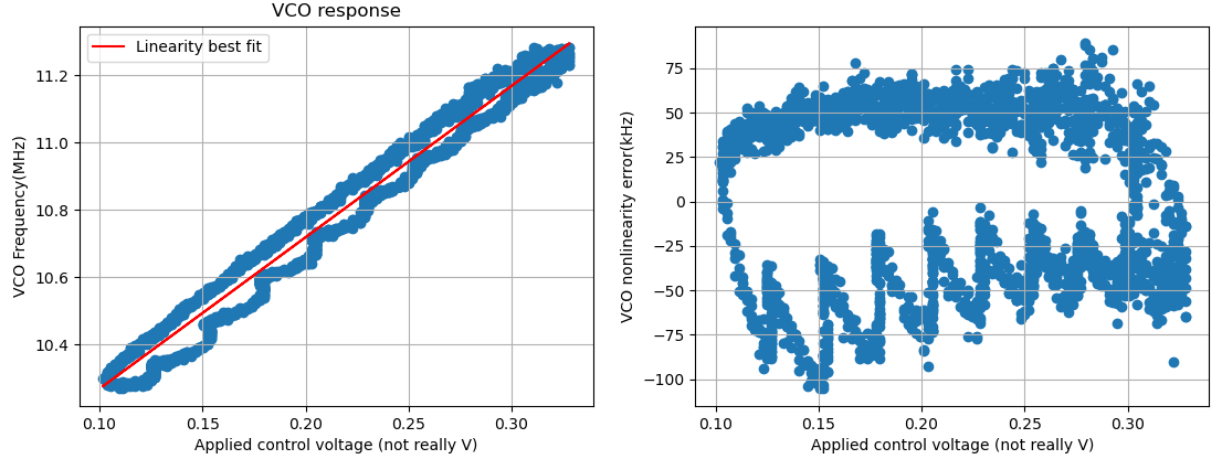 Overall it works pretty well. Locking range is 860mV. Input/output ocillation with maximum modulation in: