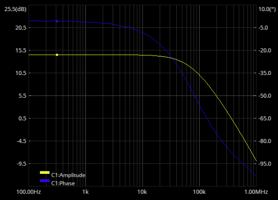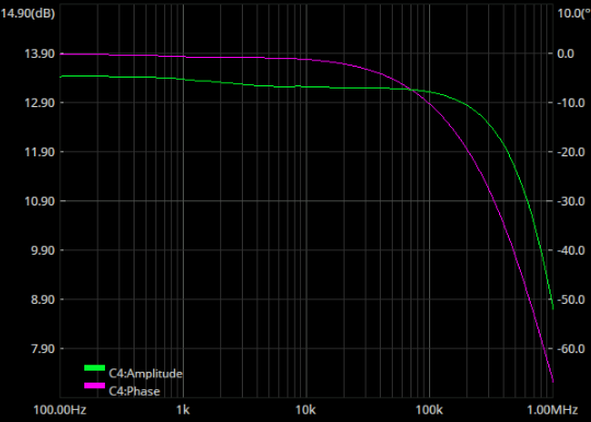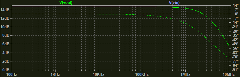 I don’t know what the cause of the difference is. I’ve been abusing these transistors a fair bit but I would be surprised if they were damaged. The output goes straight into the scope - it’s not even loaded down by the VCO. The 3dB bandwidth appears to be about 100KHz, so that wwould imply a capacitive loading of about 265pF, much more than plausibly exists. The only previous result I can find in the notes is this one [here](^a3250d) which also says that the bandwidth should be about 1MHz. Maybe I just need to build another one then.