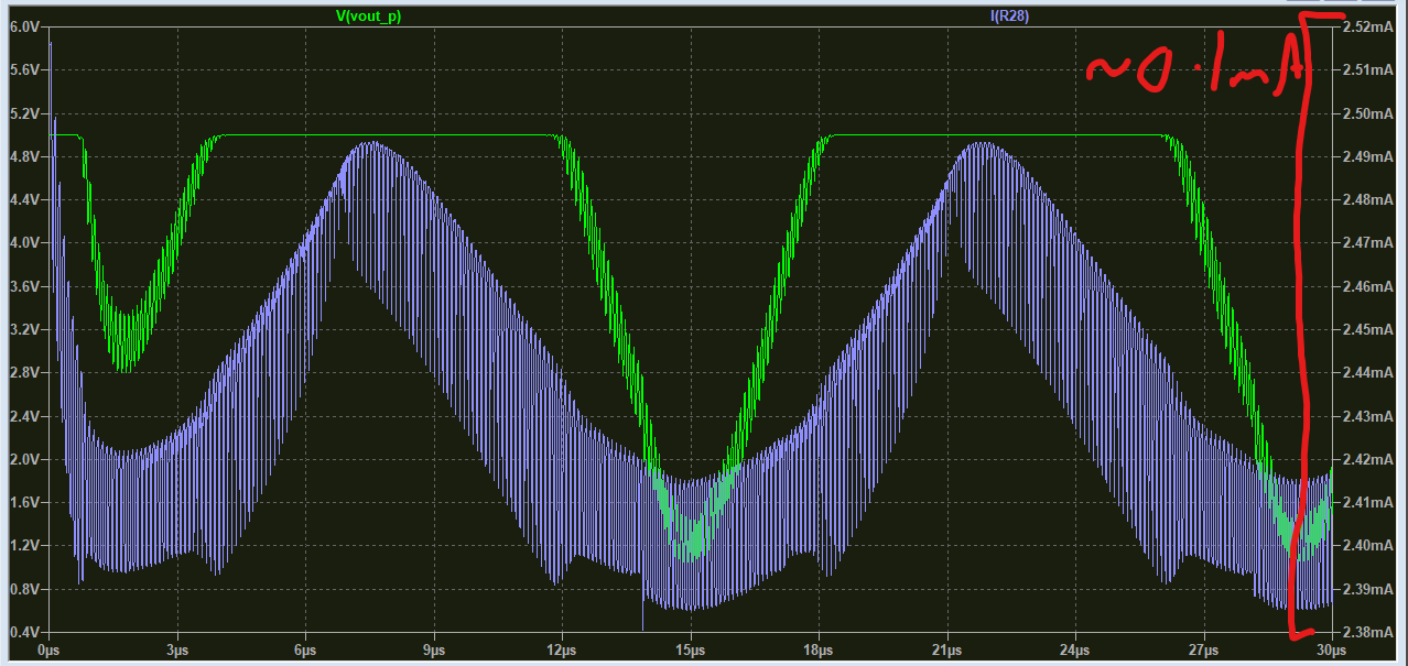 Green: ‘ph_buf’ node (after U6 buffer) Pink: ‘ph’ node. So the goal here would be to reduce the quiescent current of U6. We can do this by:
