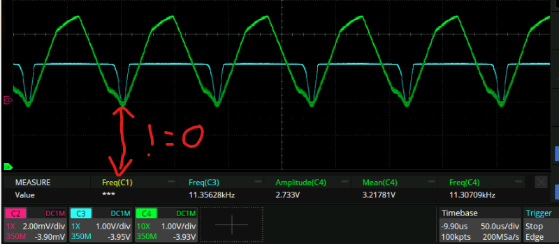 I don’t know why exactly. Decreasing R19 here to 100R improves the offset but it looks like the phase clips at the top and bottom of the range now: