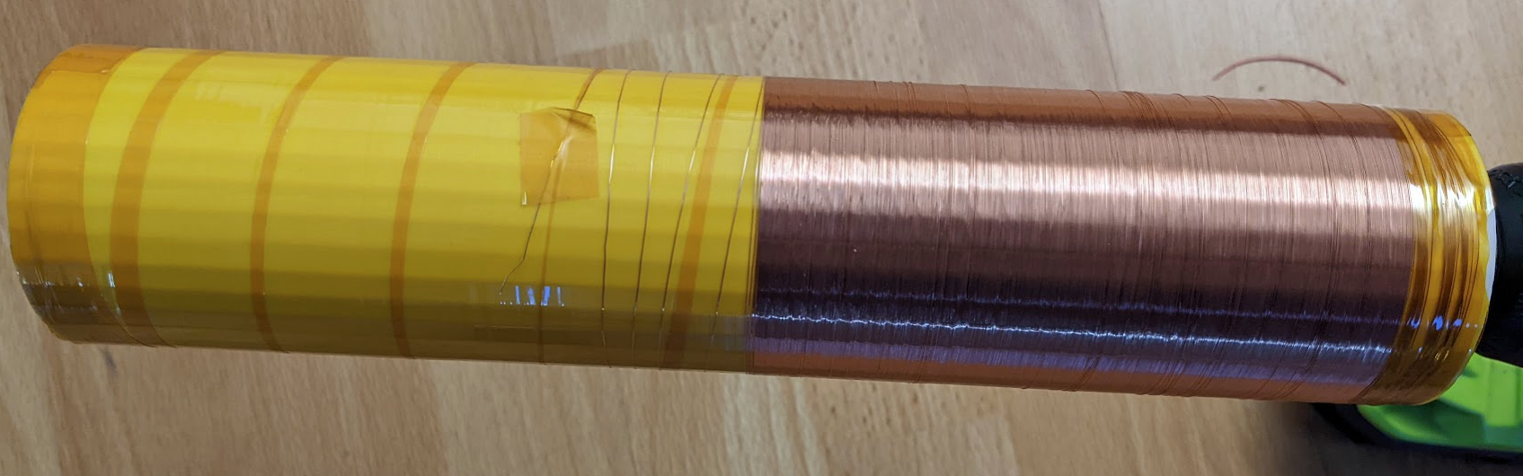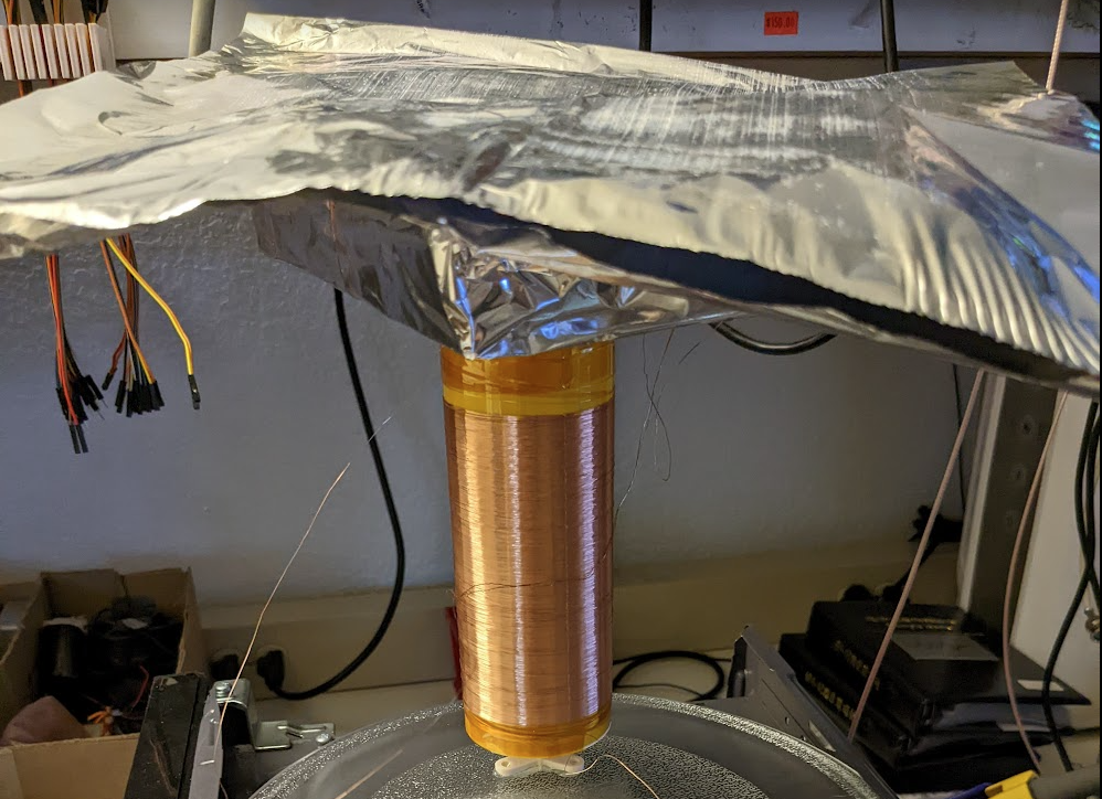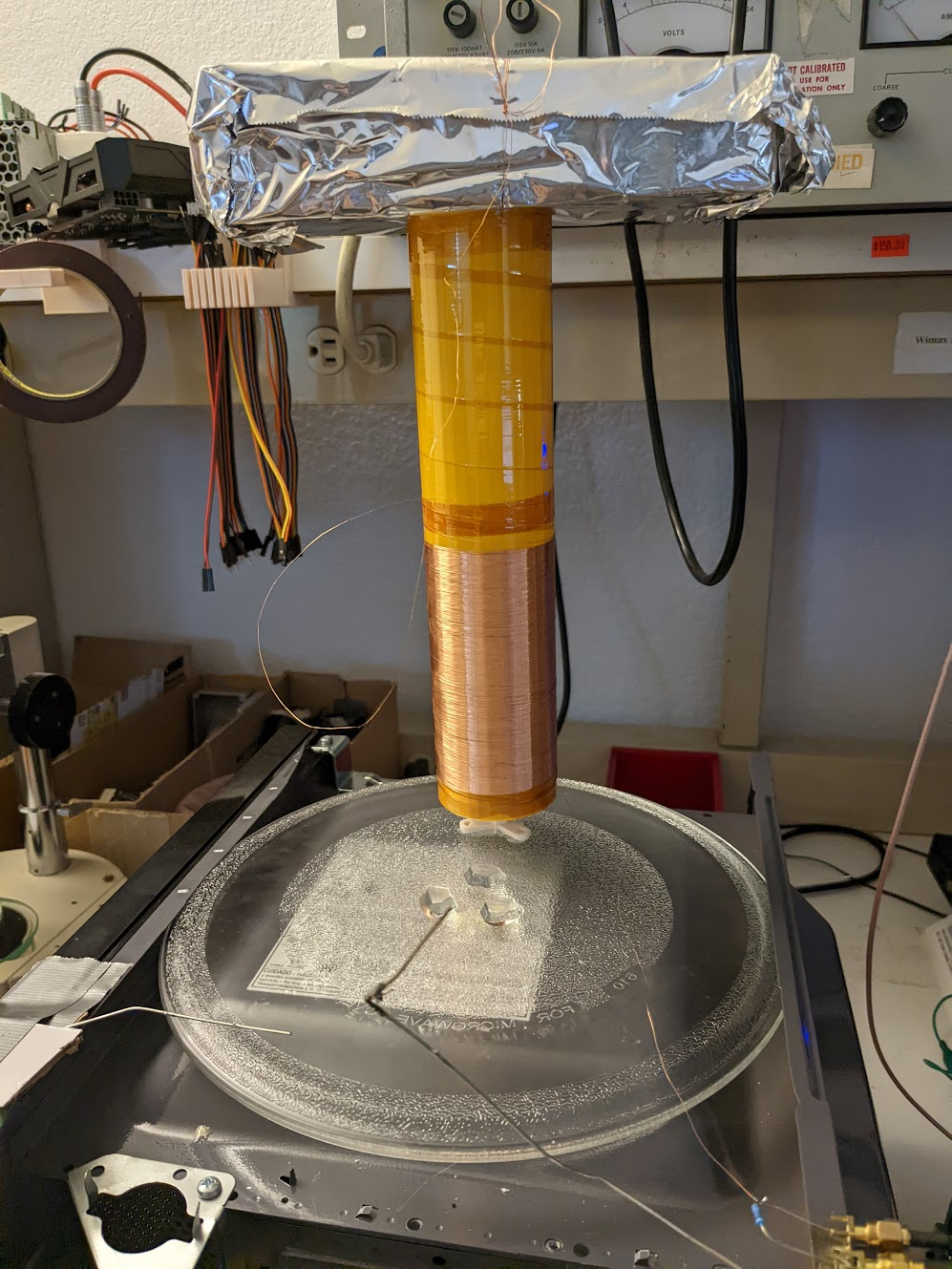 The primary side has the resonant frequency of 65kHz, the secondary 387KHz. Gotta make them meet. Adding a hat to the tesla coil: