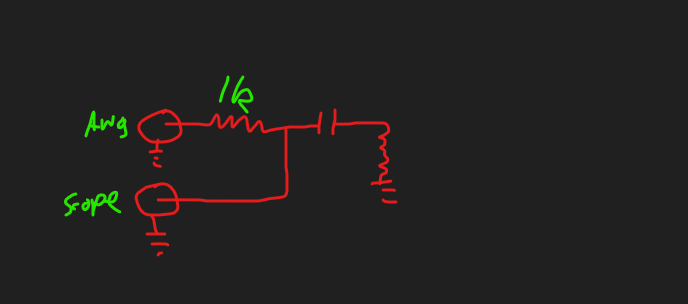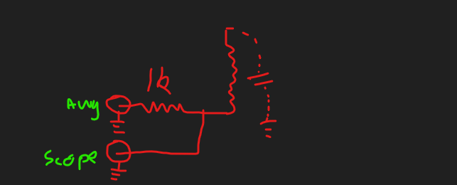 387KHz is pretty high for a tesla coil I believe but then again it’s a small coil. By the way I disconnecte the scope from the measurement and the dip went away, so this is definitely a measurement of the coil. The measurement setup looks like this: