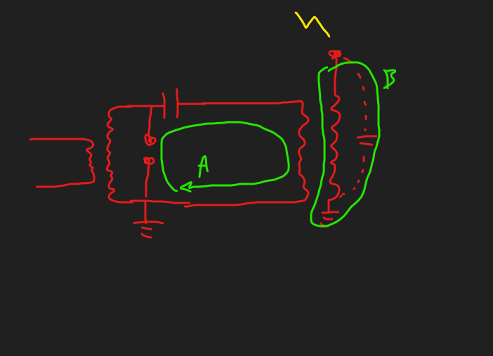 Here LC circuit A must of course be matched in resonant frequency to LC circuit B for maximum energy transfer and whatnot. Since the VNA only goes down to 50KHz I decided to make this circuit to measure the resonant frequency: