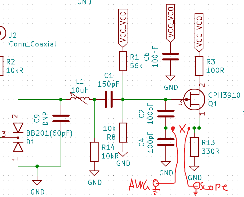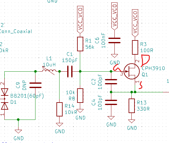 Note: when I adjust vcc up to 5.0V things become unstable in the same way as described in the beginning . Good way to check for better stability later. Adjusting the oscillator frequency to 10.0MHz from 10.2 also makes it more stable. This required a varactor voltage of 1.18V.