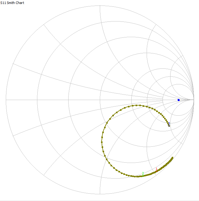 I used the nanovna to get these results. I put a 500R resistor on the output though so as not to load down the circuit. Here they are in a smith chart that I don’t understand but seems to show something important (maybe my circuit is the same as a capacitor?):