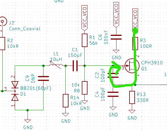 I believe is the gain of the transistor. is fixed (10Mhz) and I don’t particularly want to decrease because that would mean I needed more collector current for the same output swing.