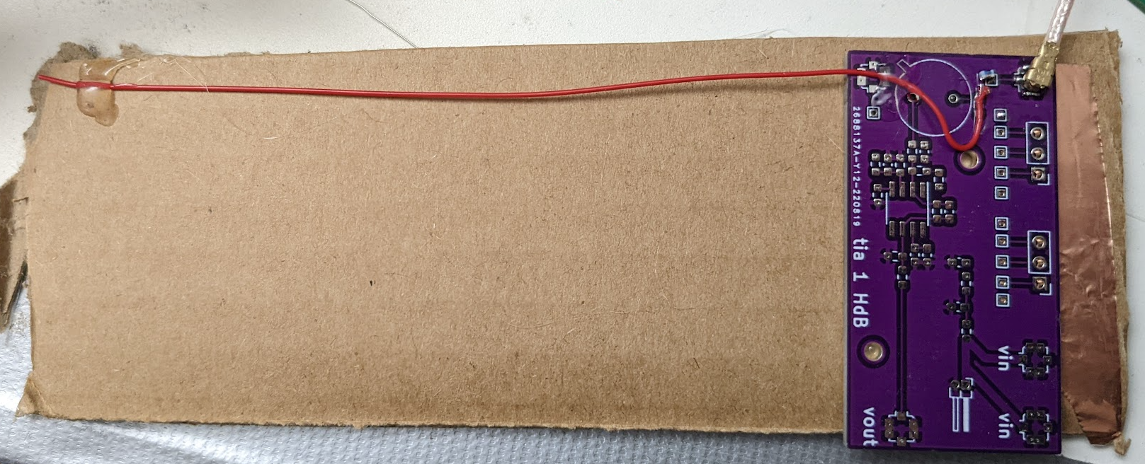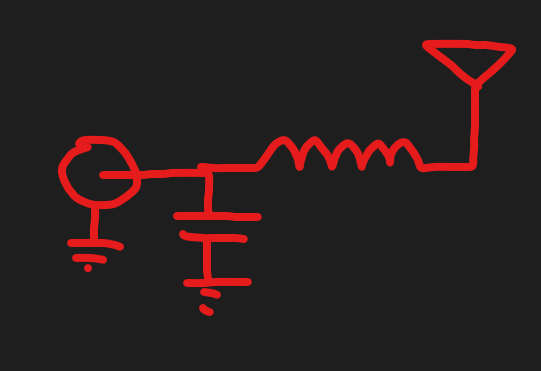 To calculate the matching network I think we need to measure the antenna impedance at our target frequency. This will be approximately infinity ohms I think.