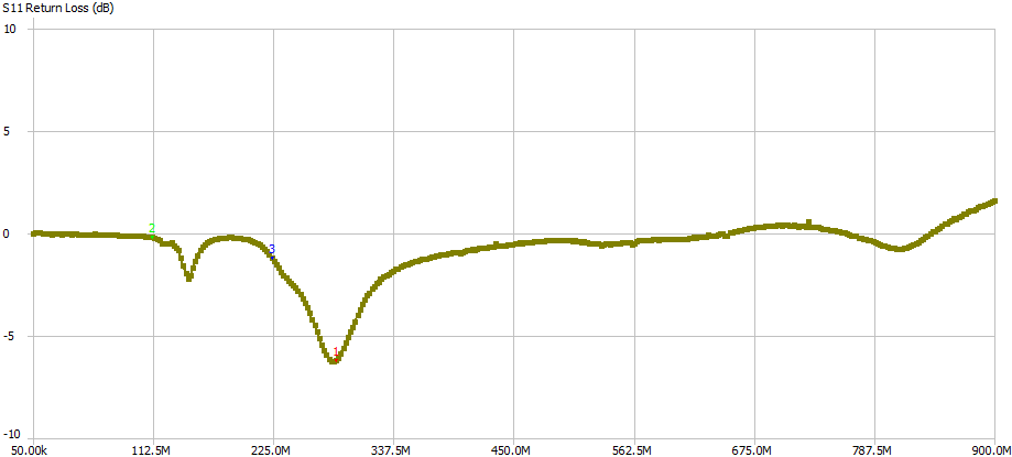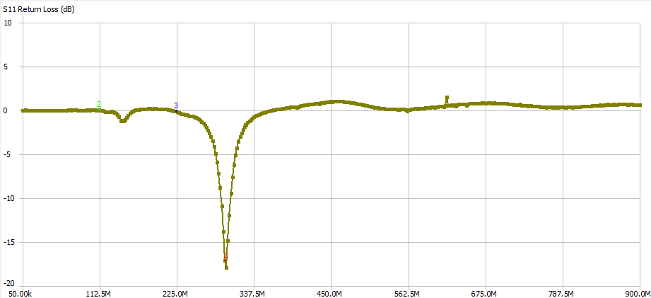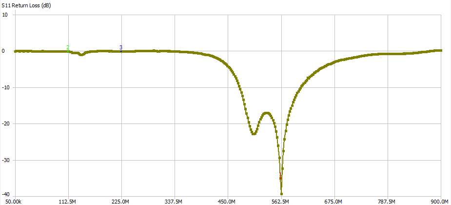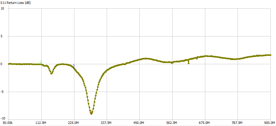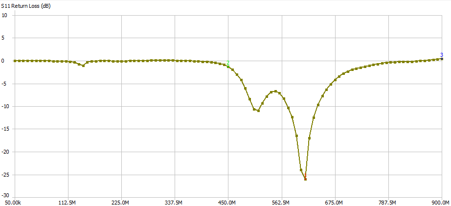 with a minimum at 612MHz, which sounds about right. -25dB means that 95% of the energy gets transmitted I think.