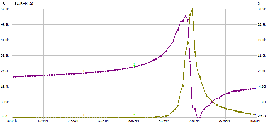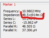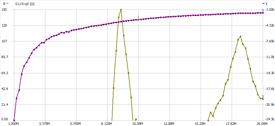 This is the R+Jx impedance plot from 1-20MHz. at 10Mhz it’s basically NaN - 3.2kR. Does that mean that I need an inductor that’s Z=3.2kR at 10MHz? without bothering to actually look the answer up I’m going to go ahead an say yes!