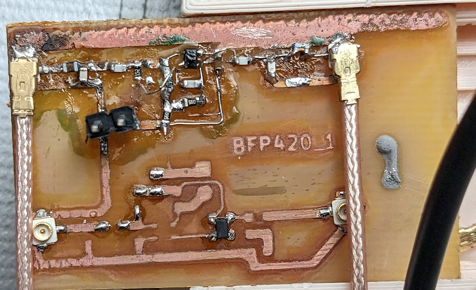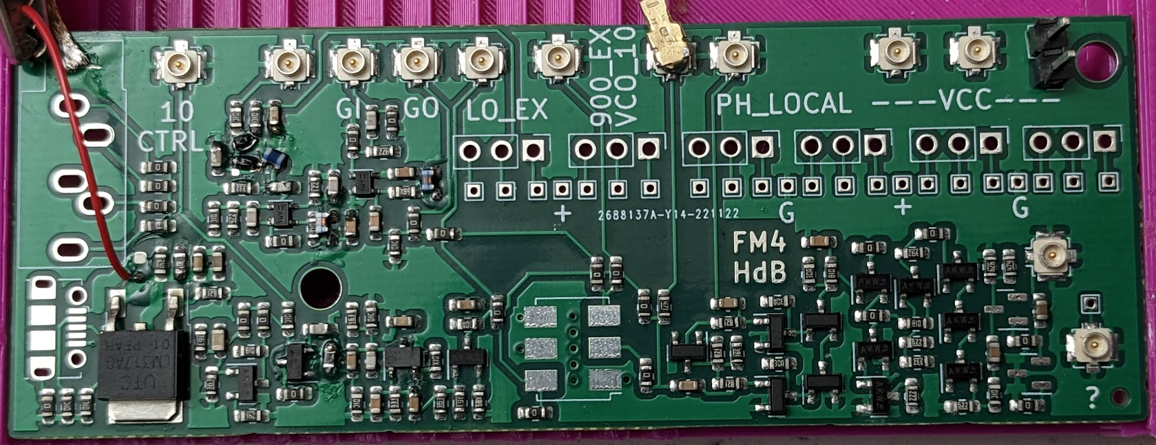 Some dingus soldered a 0R resistor onto R65 which understandably. Once that was removed the amplifier turned itself into a 700MHz oscillator. Nice. Since the VCO is right next to the amplifier I’m going to turn it off by desoldering R53 and then trying again.