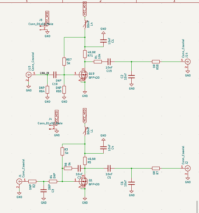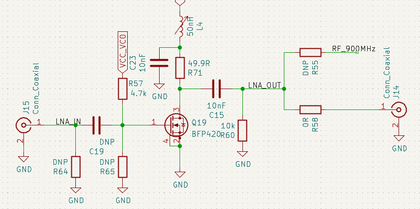 I think I want this amplifier to have a fairly low output impedance so as to be able to drive the mixer nice and hard, and so instead of increasing R71 I will increase R57: