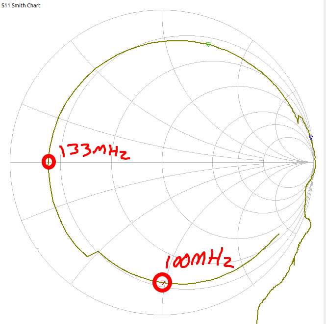 The exact transistor I am using isn’t one of the examples, and the match is supposed to be at 100Mhz. This is what I get: