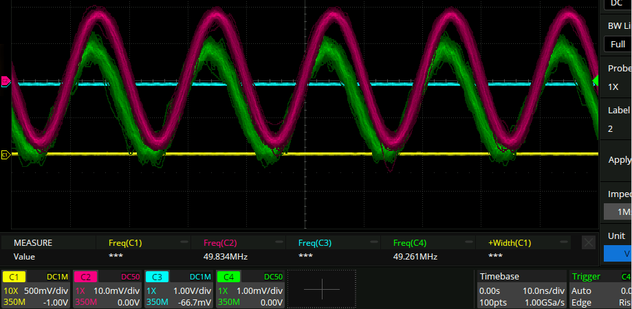 I think that I should initially run the system at 300MHz, to be comfortably within the scopes 500MHz bandwidth.