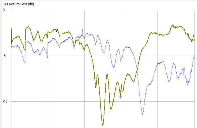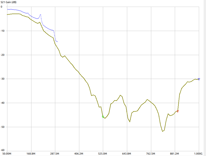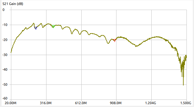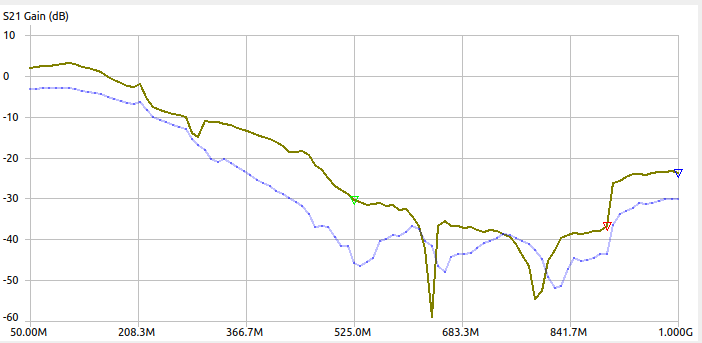 Now that we have a good starting point the time has come to try to get it to work for higher frequencies. The matching looks like this from 50-1000MHz: