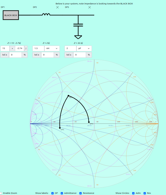 I found a cool website where you can put in an impedance and see how a smith chart moves it around. I added in my impedance and calculated what would be required to bring it into 50R:
