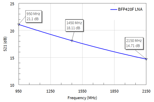 This results in a gain of about 10dB at 900MHz. I added an additional 50R resistor on to the output and it dropped by about 4dB which indicates that in fact the output is in fact fairly well matched at this frequency. If the output impedance was far above 50R then it would drop by a lot, and if it was far below 50R (unlikely!) then it would drop below that. I think maybe I should be looking at the s21 phase at this point but not sure how to use that to come up with a complex output impedance.
