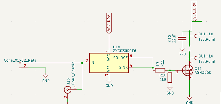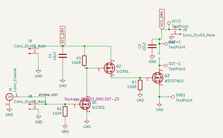 Only thing of note here is that I changed R3/R7 to 100R for smaller minimum pulse widths, as it’s important that the LED has a really low minimum brightness. I also made one using a FET driver but it didn’t arrive on time: