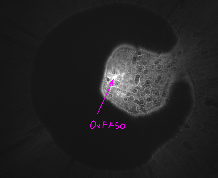 The image is totally black with the goggles in front. Turning the gain from minimum to 248 gets the laser to the point where it is juuust barely detectable if you turn off the power supply. Prolly ~100 magic sensor counts. Fun fact: if you turn a Hantek PPX2320 off and on a bunch abesntmindedly it might change the voltage and currents to maximum (31V/3A) and then the next time you turn it on it will apply that to your 10W laser diode, making the tip of the fiber catch on fire. Oops. Probs should have had another layer of safety on that one. Should have learnt my lesson on the firmware quality from how it applies 5V to the 1.8V line and has a Garbage current measurement feature. Ballpark estimate though is that it attenuates the light by (65536 / 100) * 248 = 1e5 which given the egregiously bad testing is in line with the claimed OD6+. Nonetheless I think I need a second line of defence to be doing anything properly eyedangerous here.