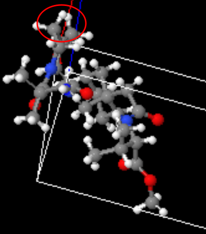 but wait, to get the whole molecule we need to apply only one symmetry but there are 4 applied here! That’s because the unit cell of butane ice apparently is made up of two butane molecules. So which symmetry group needs to be applied to obtain a regular butane molecule?
