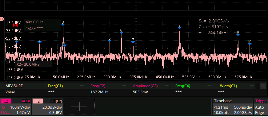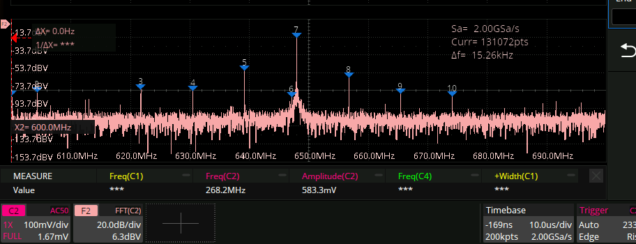 Here is what the FFT of the nanoVNA is when it’s outputting a CW “750MHz” signal according to my scope:
