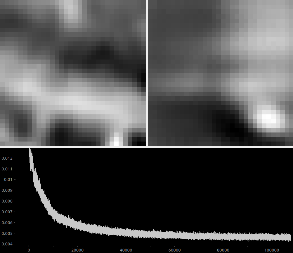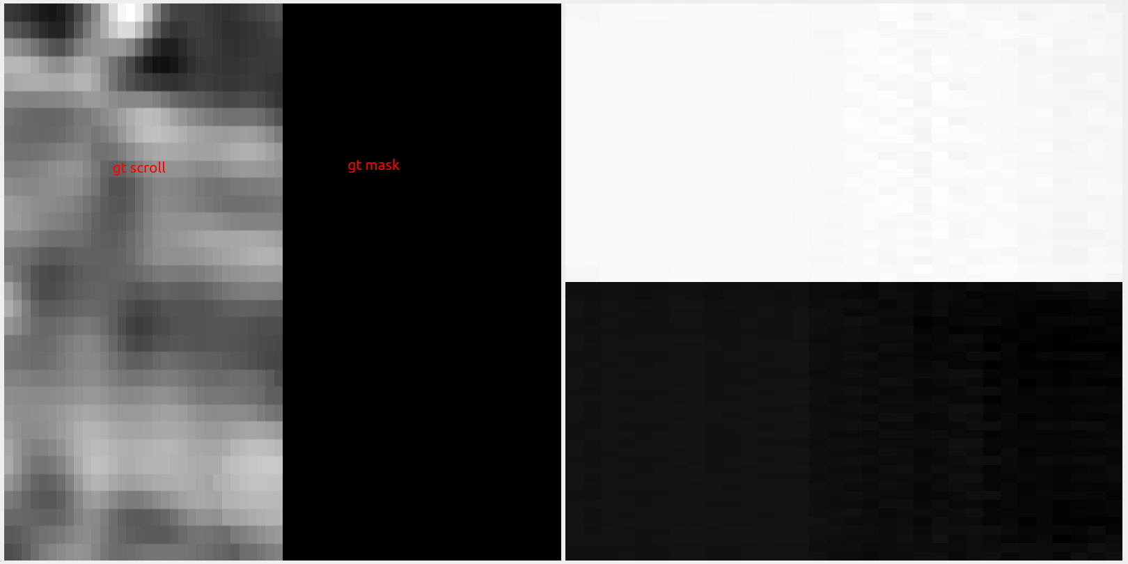 … it appears that everything that is scroll is white and everything that is ground truth is black. The ol’ “here’s the mean of your dataset” trick. There’s no real proper reason why it is that I should be training on the reconstruction as well as the ground truth though, so if I just drop that hopefully that will make it better at training on the ground truth.