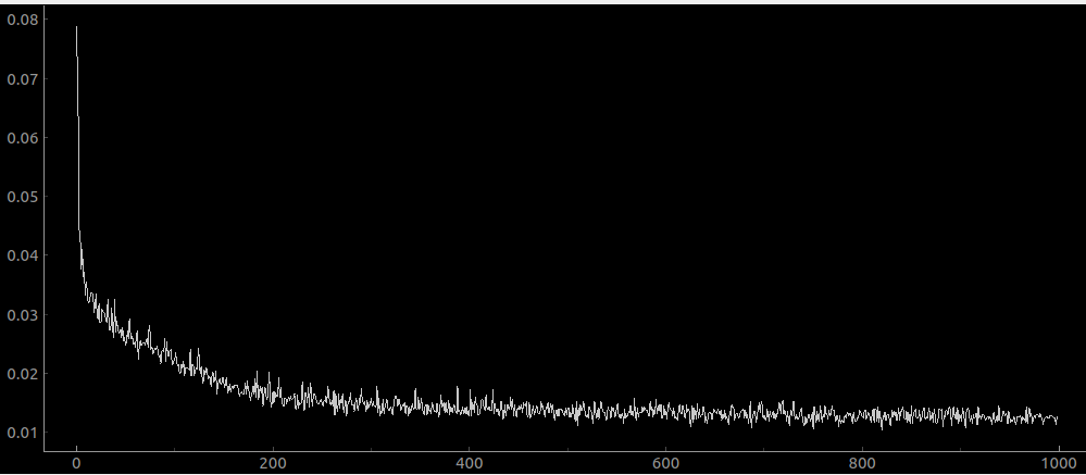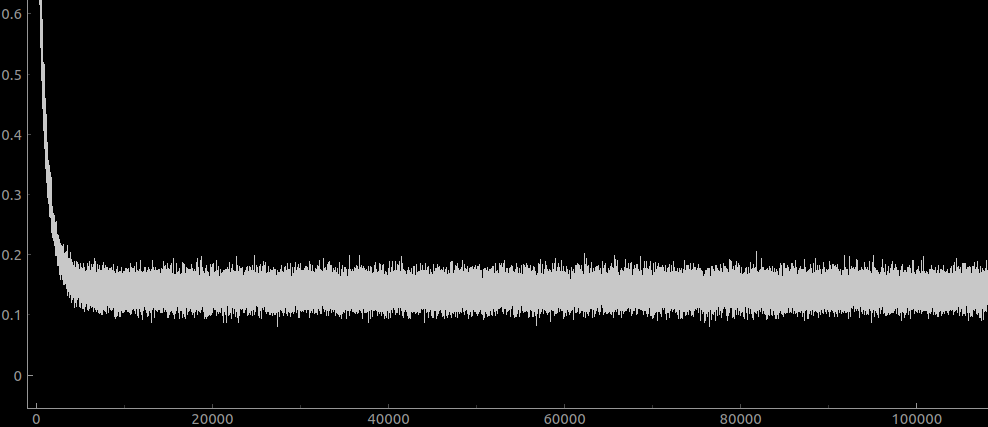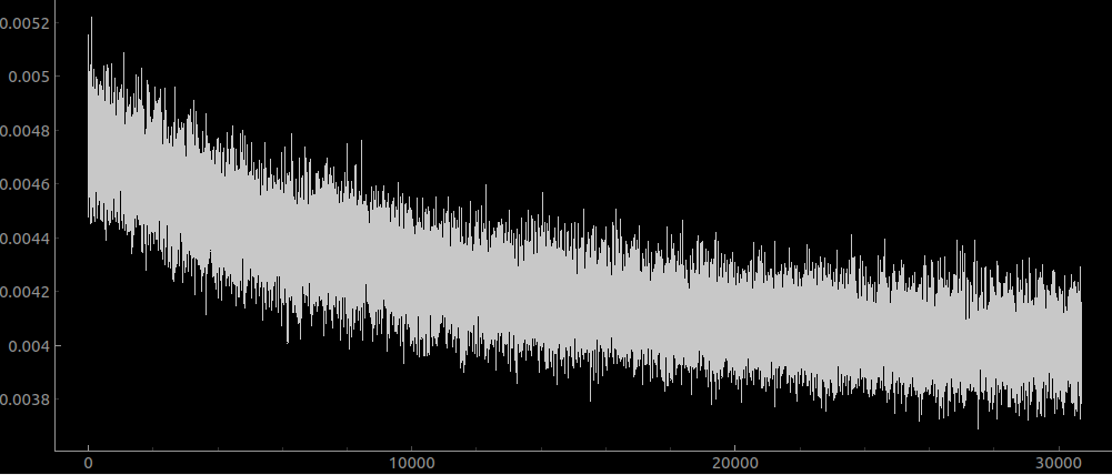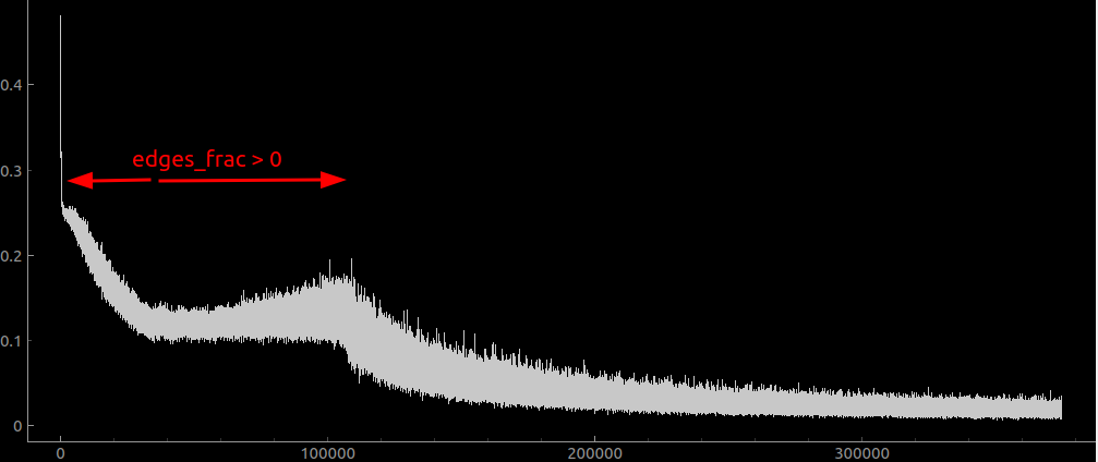 I got rid of the code for training on only data around edges - I put that in because of the garbage that I got out before. Here is the loss curve for a true sampling of the input, attempting to reconstruct the output: