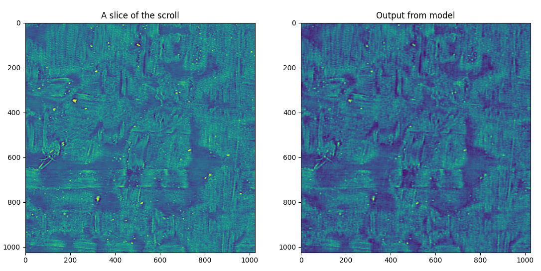 # return self.decode(z), mu, logvar^^That’s the slightly upgraded variational version. What I have done is tr y to get it to reconstruct arbitrary 32**3 cubes of the scroll, picked from a ‘safe’ middle region: