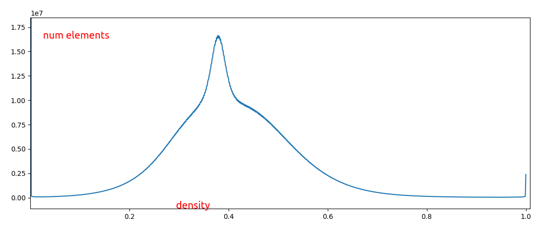 I haven’t been normalising the input to my net. It occurs to me that this is a bad idea. here is a histogram of the density across the whole ground truth scroll (after converting from uint16 to float):
