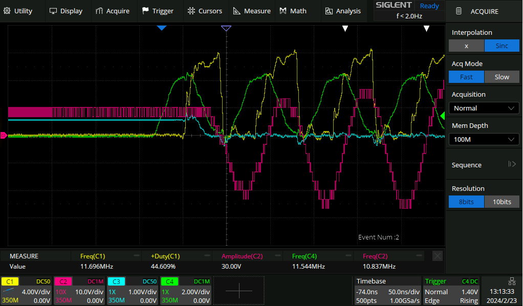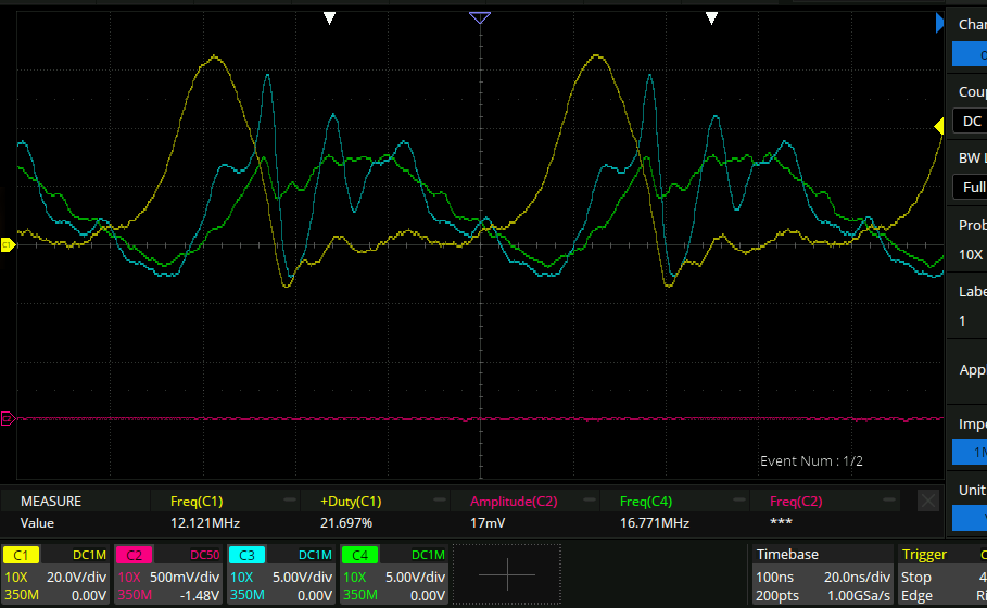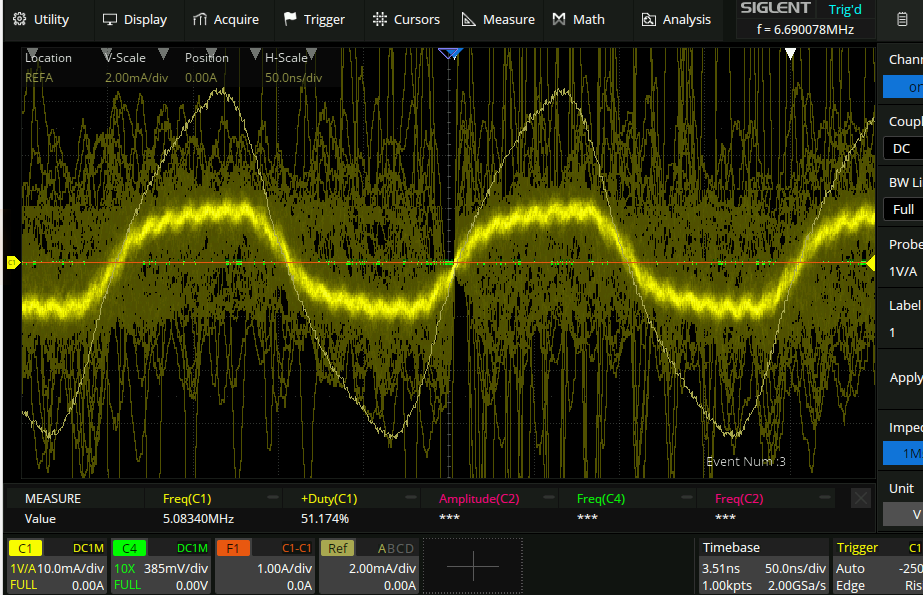 Here I have changed the probing though - it seems that just using a divider does not work very well in this situation for some reason.