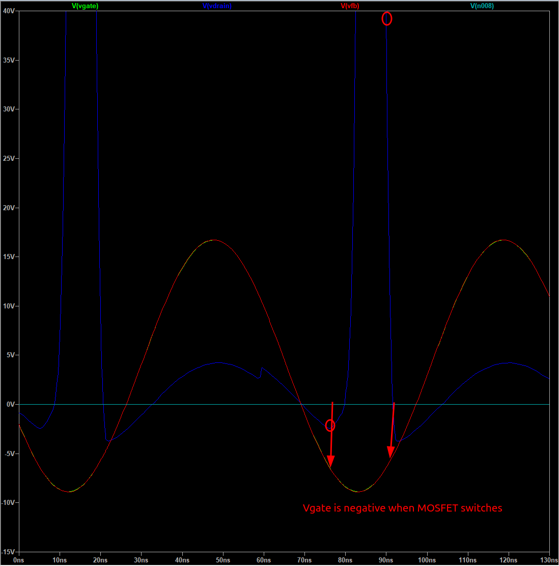 What I do not understand here is when the MOSFET goes open. It clearly happens when the gate voltage is just starting to rise up to around 0. But is this because of ZVS, or because that’s just how MOSFET’s work so of course that happened/