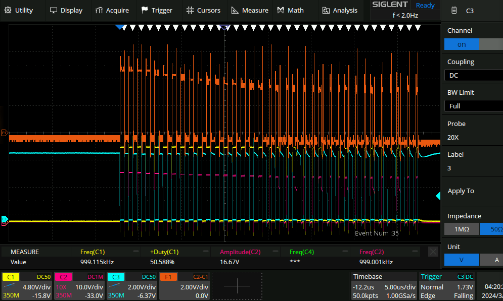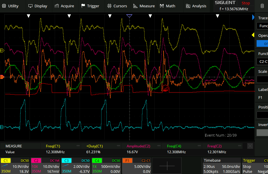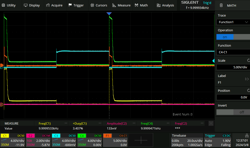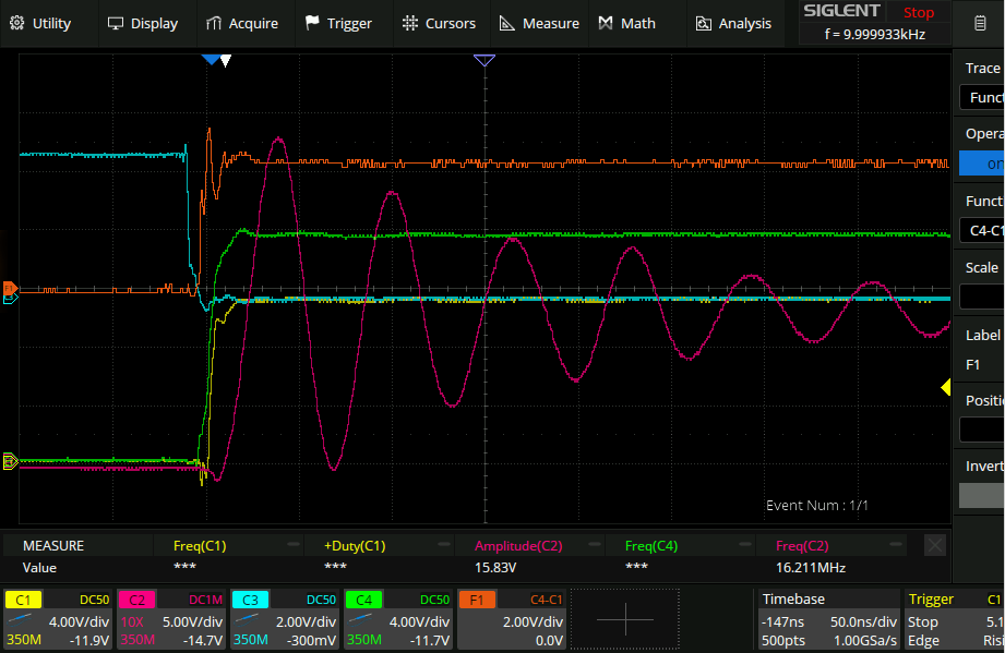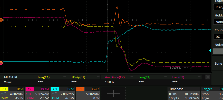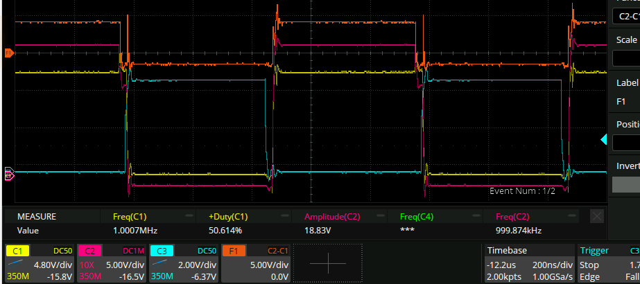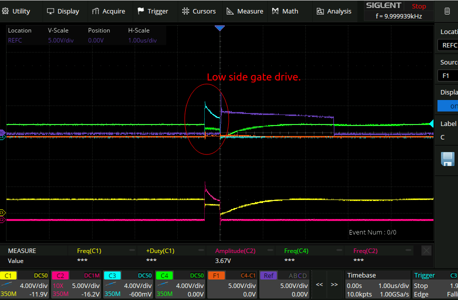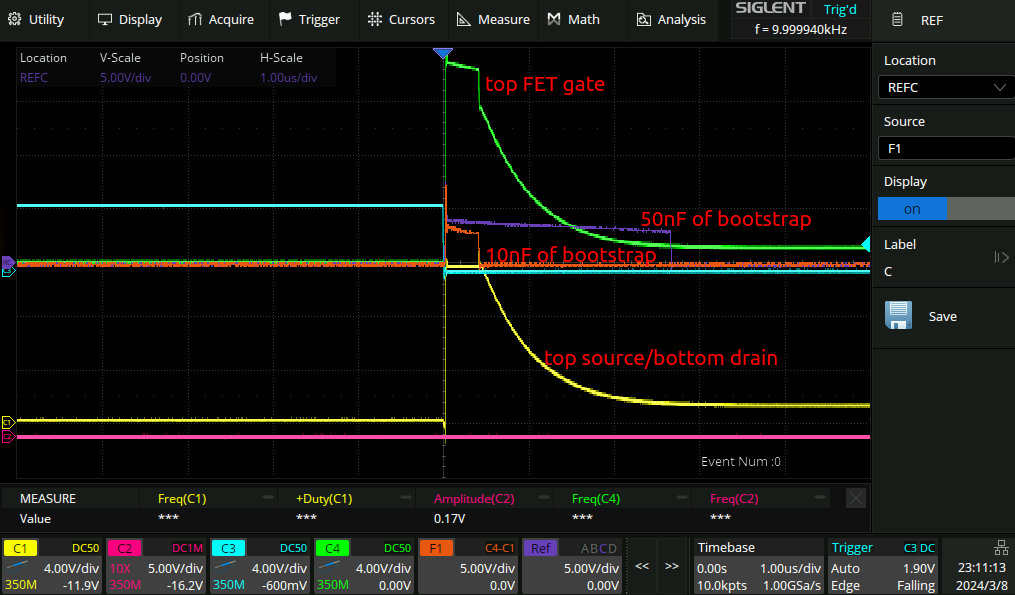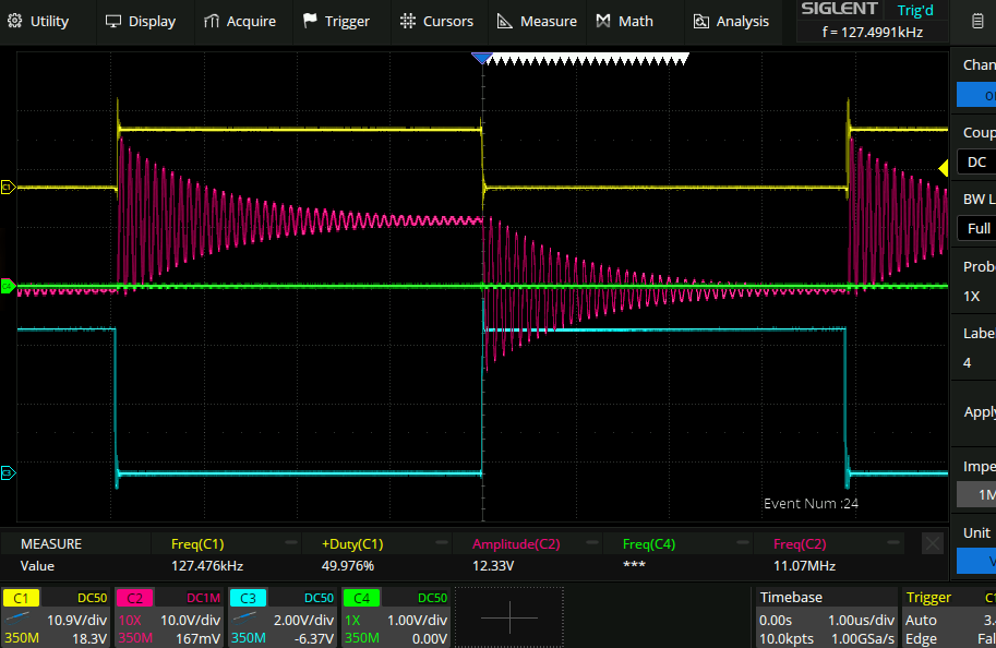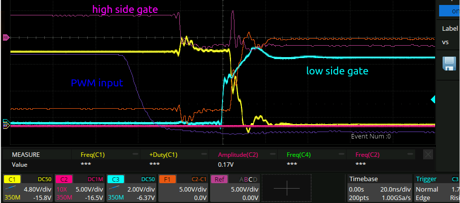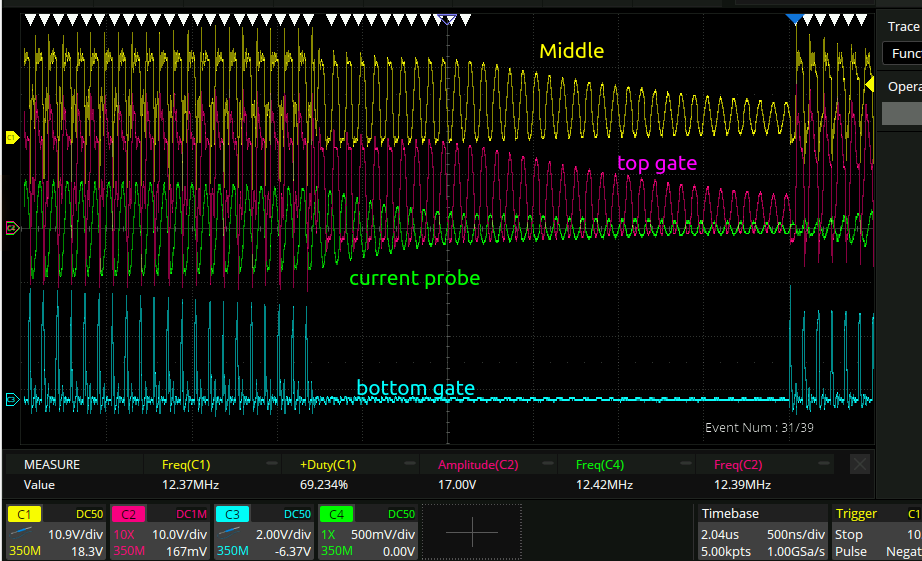 it’s not 100% related to frequency or anything, I don’t really know what the root cause is. But I notice that the lower gate drive pulse is quite narrow.