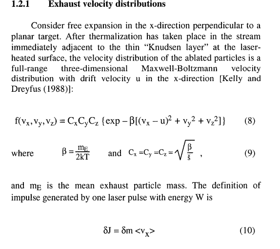 - Ablating a material would then give you a velocity distribution as opposed to a well controlled velocity from single well defined droplets. “Laser ablation and its applications” on the section on space propulsion says that you would get a “Maxwell-Boltzmann velocity distribution”: