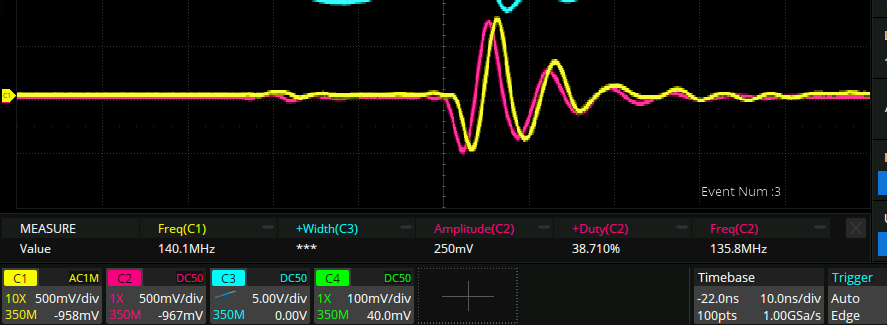 HMMMMMM. A strikingly similar graph, I am sure you’ll agree. Perhaps my decoupling is completely fine and the scope probe is just acting as a current probe!