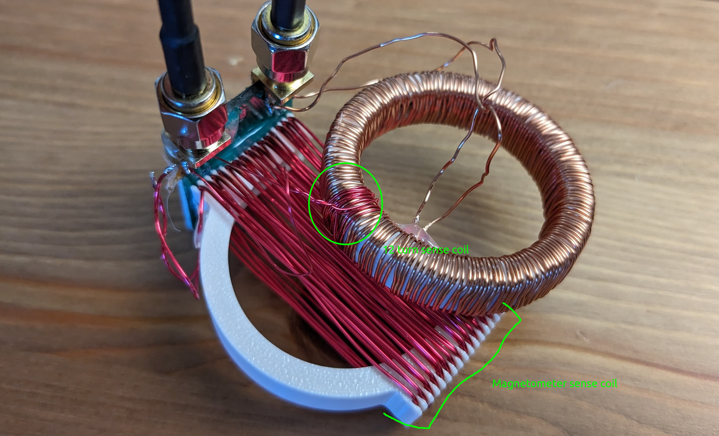 This is just some quick measurements of the BH curves of the magnetic material used previously. I watched this typically excellent applied science video on how to do it. Here is an image of the setup, I added a new sense coil to see what’s going on: