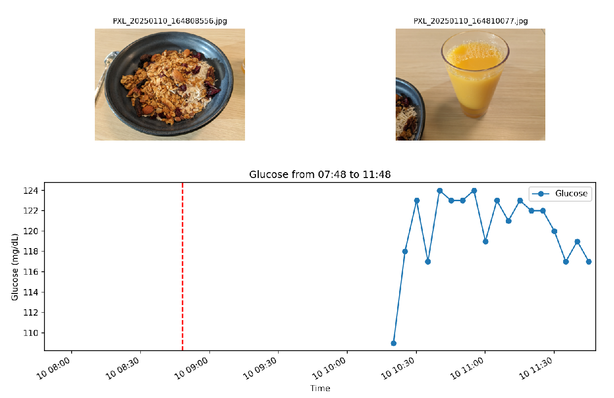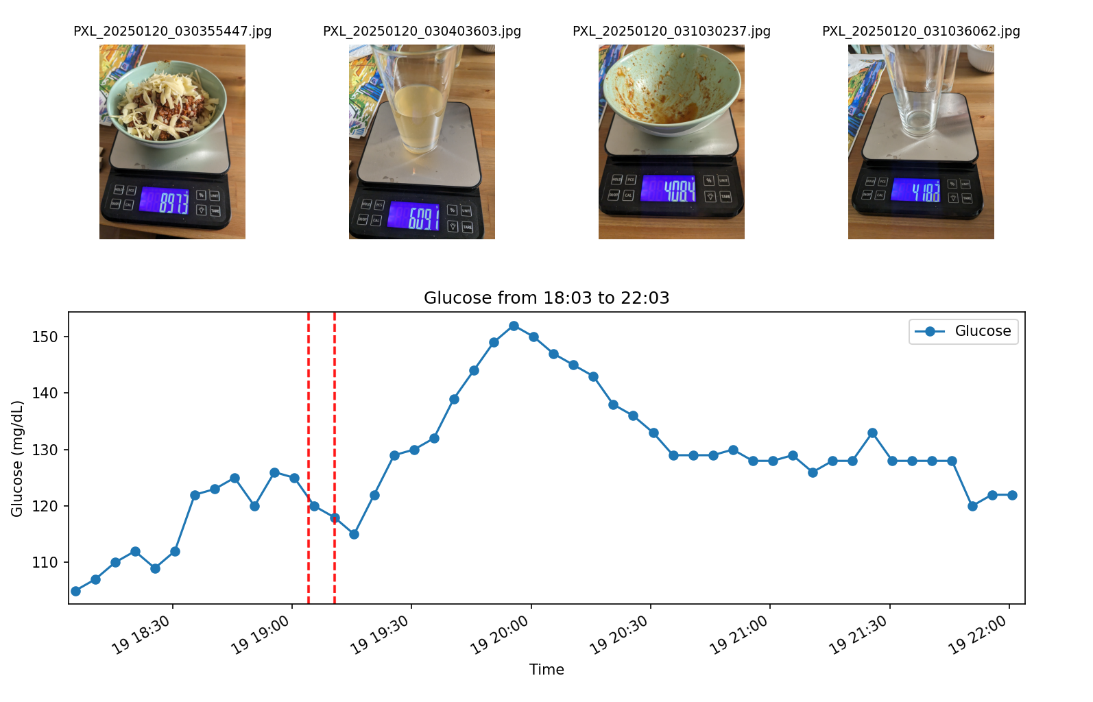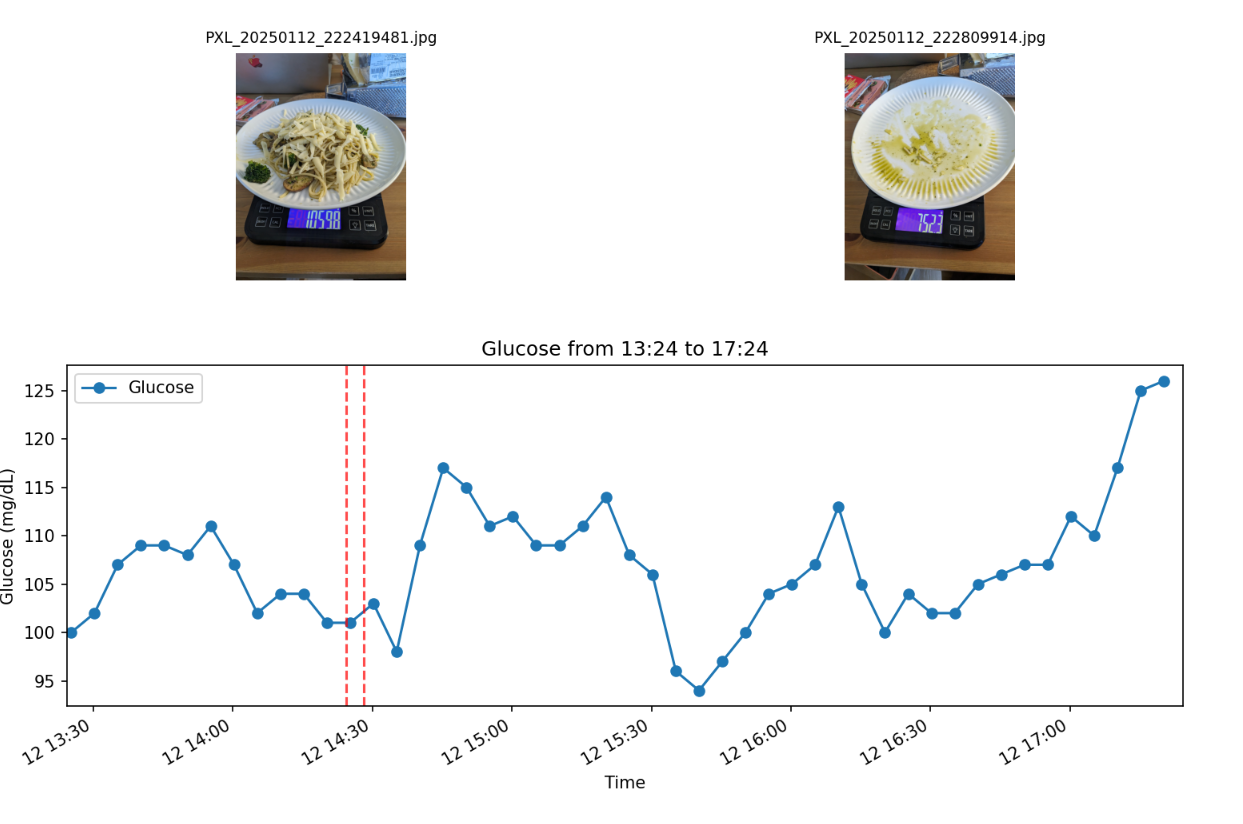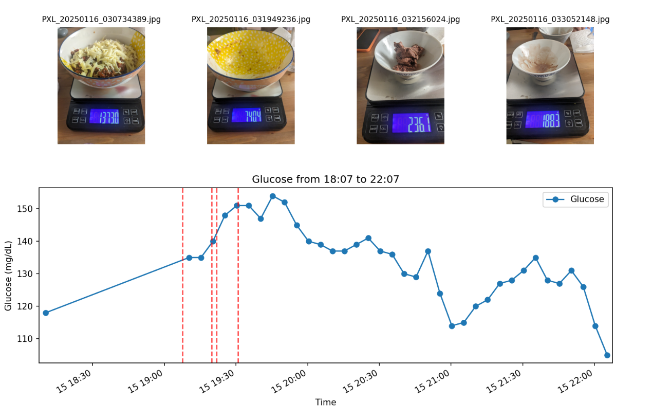 I specially took data with the orange juice after, but the glucose meter didn’t record data for that period???