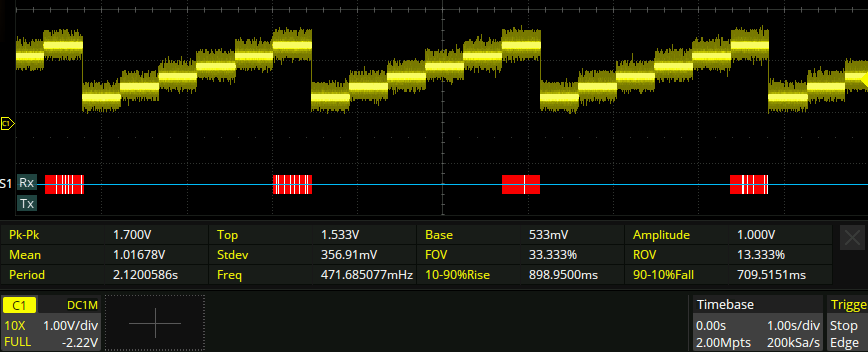 Decoding a whole bunch more data than that leads to this trace of some samples: