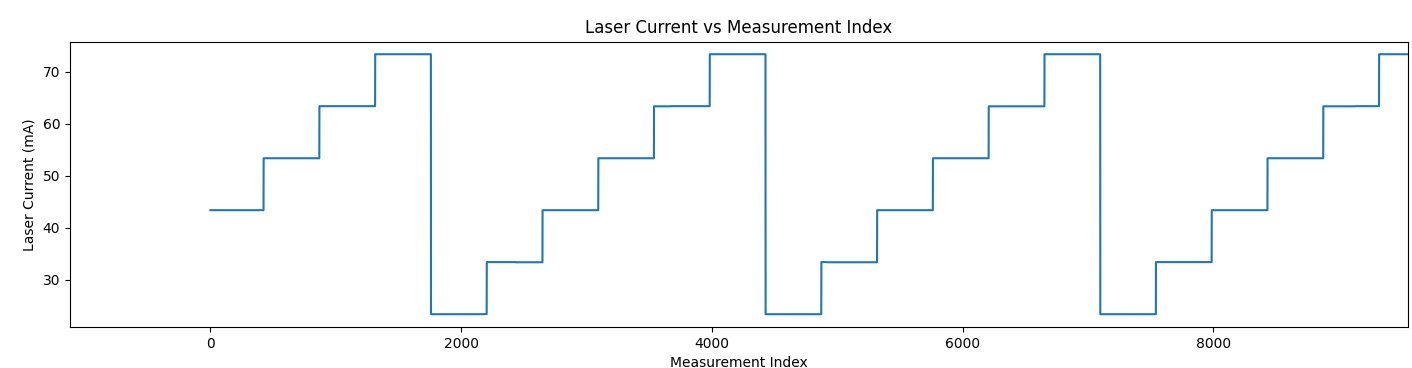 Note the time axis here. here is a plot of the measured laser current as a function of time: