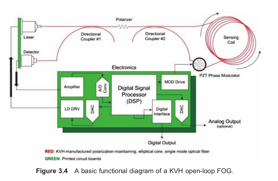 the basis of the ring laser gyro. When the fiber coil is not rotating, the optical path length in both directions is the same, so the two counter-rotating optical