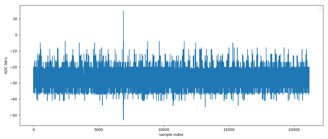 …Noise. note that the above trace is only for a few milliseconds of data, and the laser current changed every few hundred milliseconds. But there’s no signal much larger than this showing up at any time, that was verified before by just probing the input to the ADC with the scope.