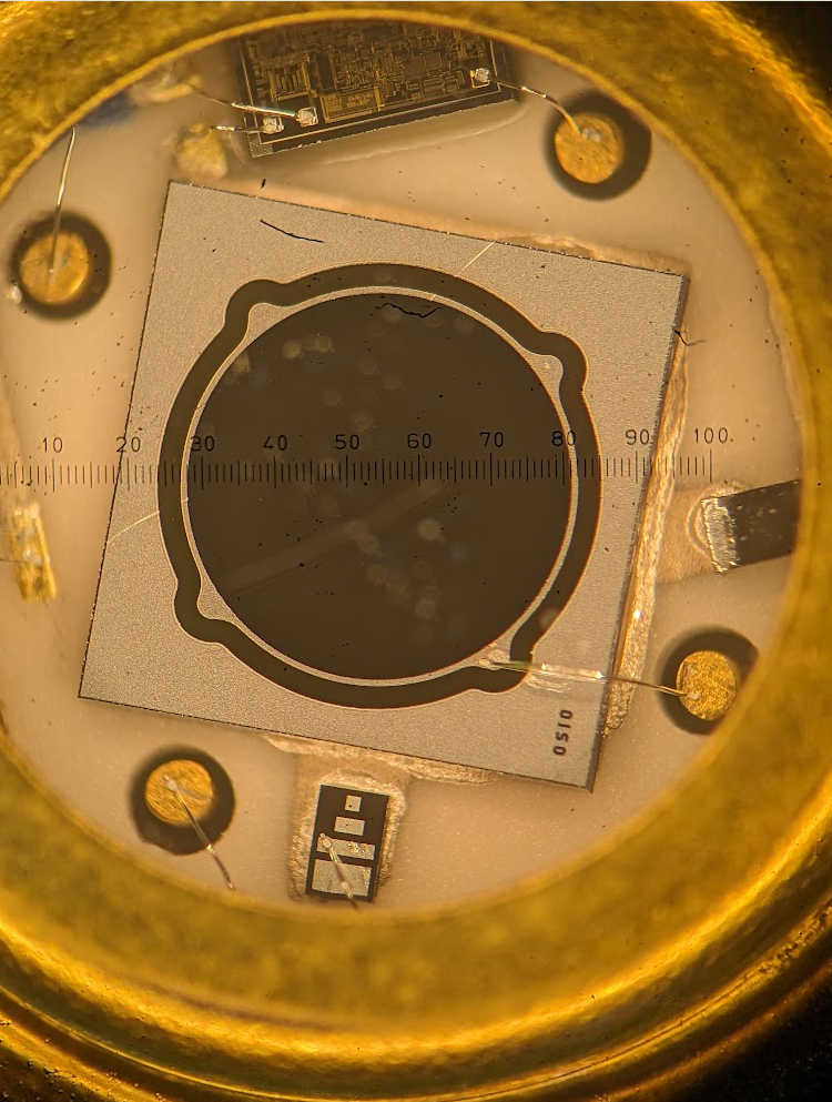 The photodiode on the flip side of the board is interesting. It has a whole microchip inside for some reason: