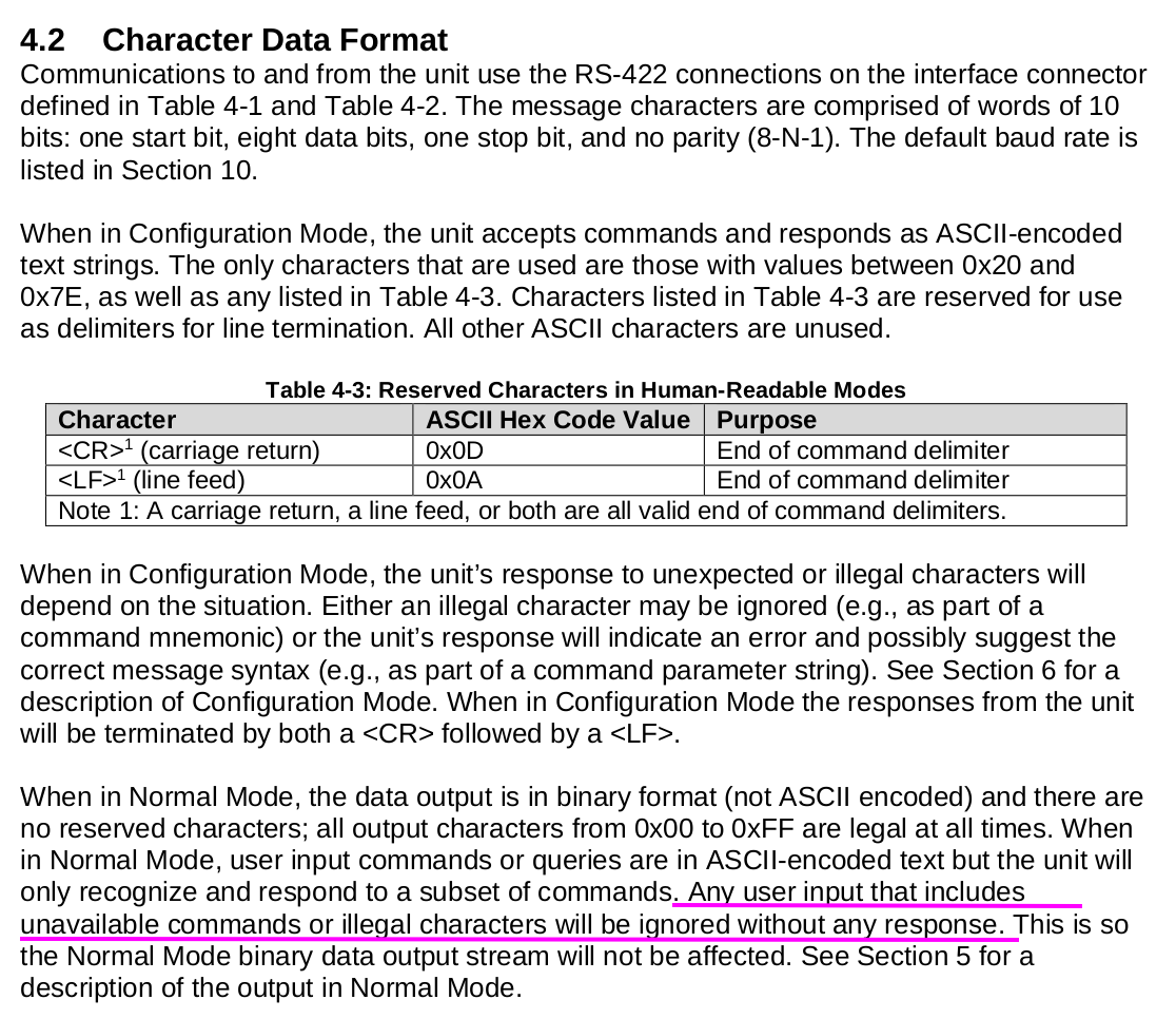 The DSP-750 has no documentation that suggests you can send it commands. However, the DSP-1760 (a full imu, not just a fiber gyro) includes this command table: