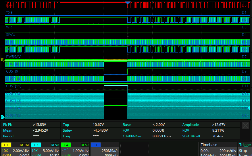 Here I ran the scope capture overnight. Found one instance in which the data was interrupted for 3.5ms. Not good!