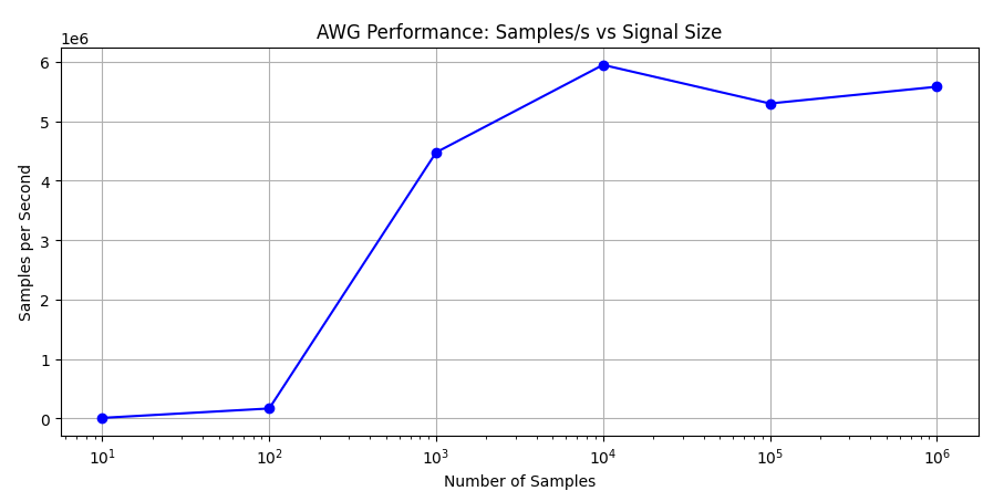 completely unacceptable. Needs to be >10MSa/s, and should be more like 100e6. However when I ask ChatGPT to translate the python code into C it goes to 100e6 samples/s, so that’s nice. I will avoid adding a C library dependency into the python package for the moment, but that’s something that can be done in the future.