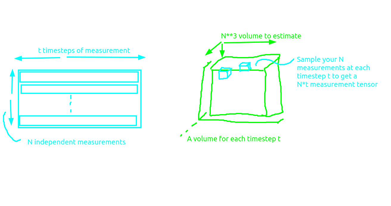 When each timestep is simulated, it produces a whole volume of size L**3. But we only observe N measurements from it. Maybe if I just save those N measurements, then I can do the update in-place and don’t need to save the full state S? I feel like this might make it a lot harder to train though since lots of the information has been straight up thrown away, rather than compressed. ChatGPT agrees with me, but it isn’t trustworthy on this kind of stuff. Worth some experiments.
