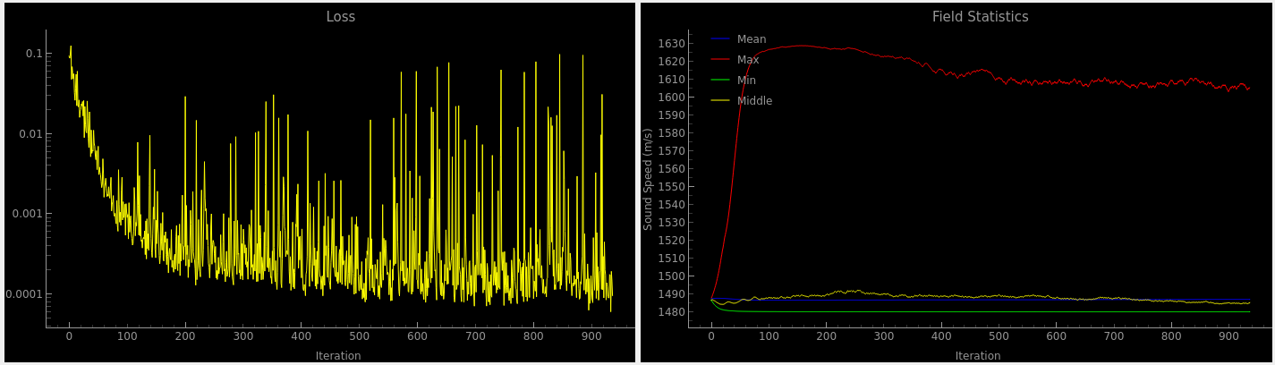 Here is an extremely weird plot of the loss and the speed of sound in the center of the grid: