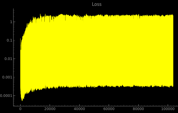 And you can see that the stats continue to be bad - the loss is jumping around by orders of magnitude once again: