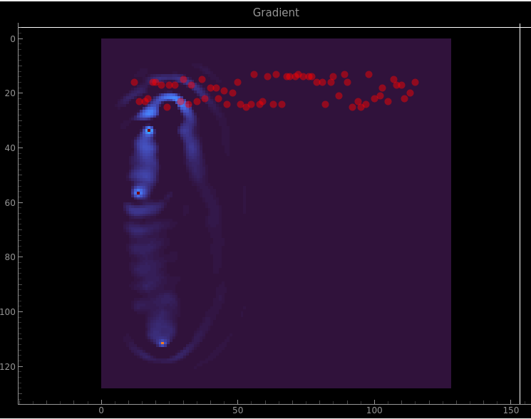 Throughout this whole sim there has been a persistent big ‘hole’ on the left hand side which I had been chalking up to Bad initialization. But just now I added a gradient plot so I can see how thing are being updated, and this is what came up: